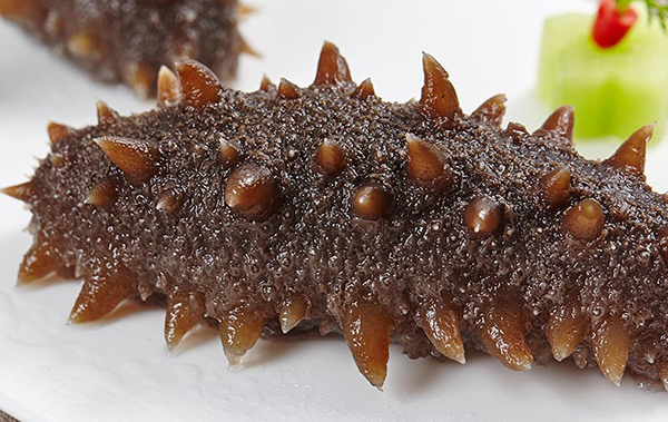 2、砂鍋置中火上,摻入雞湯,放入五香粉、姜塊、蔥結(jié)、花椒、料酒、精鹽、糖色、冰糖渣、胡椒粉,然后放入海參、豬肘、香菌同燒,待湯沸,改小火慢燒慢煨,煨至豬肘內(nèi)酥爛,撿去姜塊、蔥結(jié)。窩盤(pán)先用軟漿葉墊底,將豬肘撈起,皮向上平放窩盤(pán)中心,再將海參絲堆在豬肘上,香菌圍在周?chē)缓髮諠?,達(dá)蓮公司提醒加雞油、醪糟汁推均舀入窩盤(pán),最后將蔥花油淋在海參絲上即成。